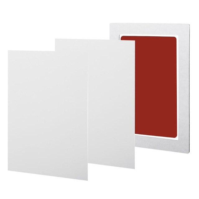 Remove everything from the packaging and place it on a table or the floor. Place the clean-touch ink pad, ink side down on the included white, imprint card.