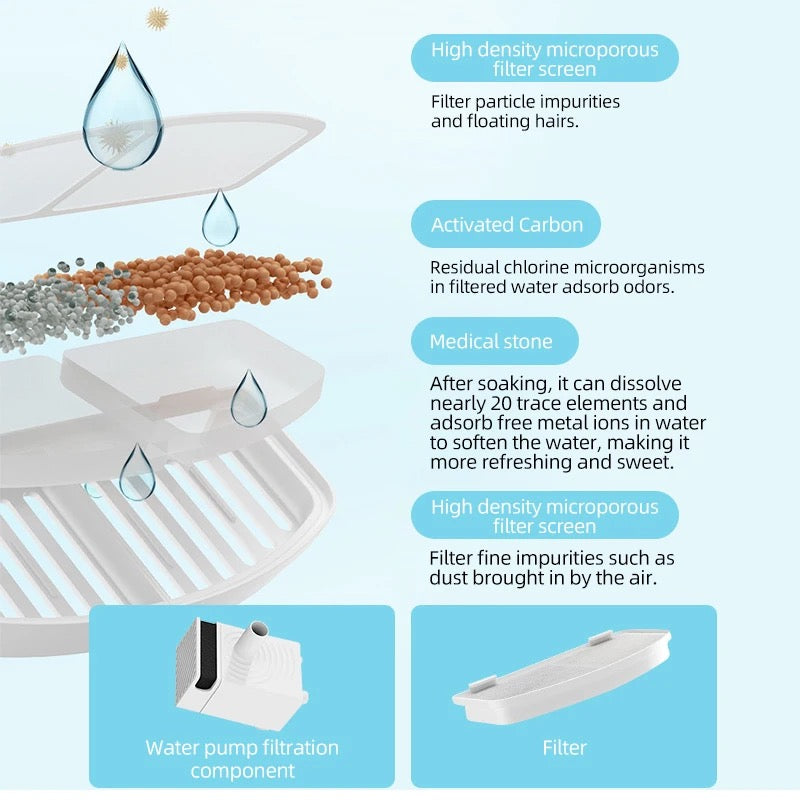 Circulating and flowing water, which cats love very much, stimulates their interest in drinking water, and you no longer have to worry about the cats at home not liking it. It can effectively help increase their daily water intake.
